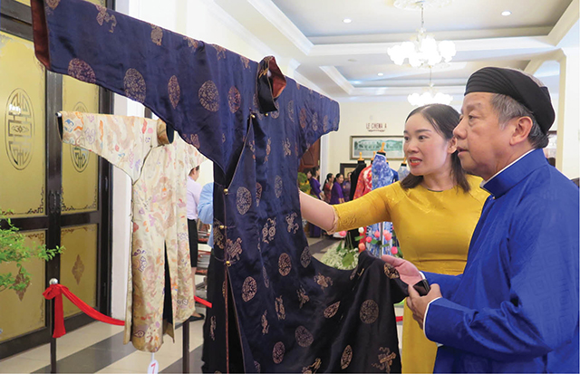 Chủ tịch UBND tỉnh Phan Ngọc Thọ tham quan không gian trưng bày áo dài truyền thống trong khuôn khổ hội thảo