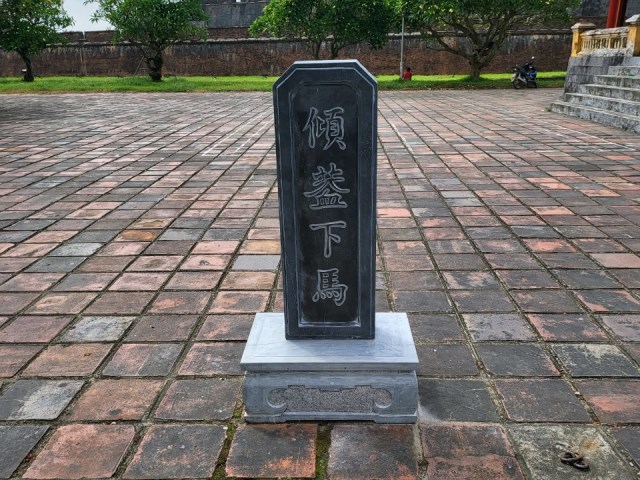 HNN.VN - Trung tâm Bảo tồn Di tích Cố đô Huế vừa hoàn thiện việc dựng lại tấm bia đá “Khuynh cái hạ mã” đặt phía bên phải công trình kiến trúc Phu Văn Lâu trên đường Lê Duẩn, TP. Huế.