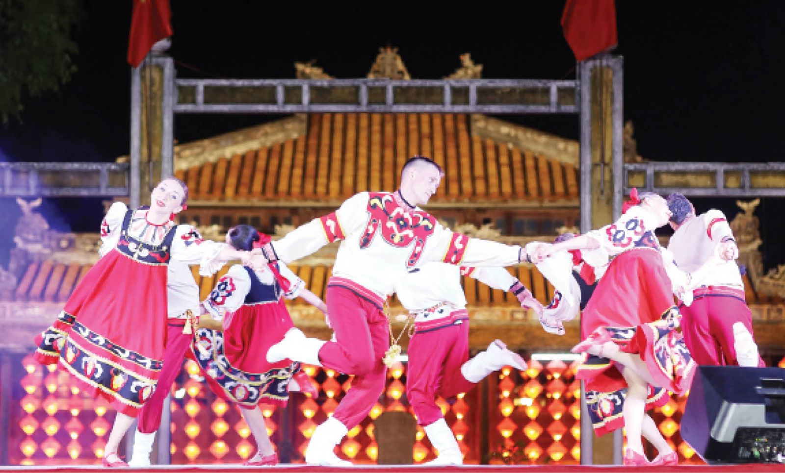 Mồ hôi chảy ướt cả trang phục biểu diễn vì biểu diễn hơn 1 giờ đồng hồ, các nghệ sĩ đoàn ca múa nhạc dân gian Belogorie (Nga) vẫn hăng say, quên đi mệt khi phía dưới, hàng trăm khán giả chăm chú theo dõi, dành những tràng pháo tay tán thưởng, hò reo sau khi tiết mục kết thúc. Những tiết mục nhảy, múa hát đầy trữ tình, nhưng không kém vui tươi đặc trưng, “Điệu múa vòng tròn Karagod của vùng Belgorod” - một điệu múa thể hiện truyền thống văn hóa dân gian của vùng Belgorod; “Bài hát không có đàn Bayan”; đặc biệt là bài hát quen thuộc “Cachiusa”… đã đưa khán giả Festival Huế đến với đất nước Nga xinh đẹp.