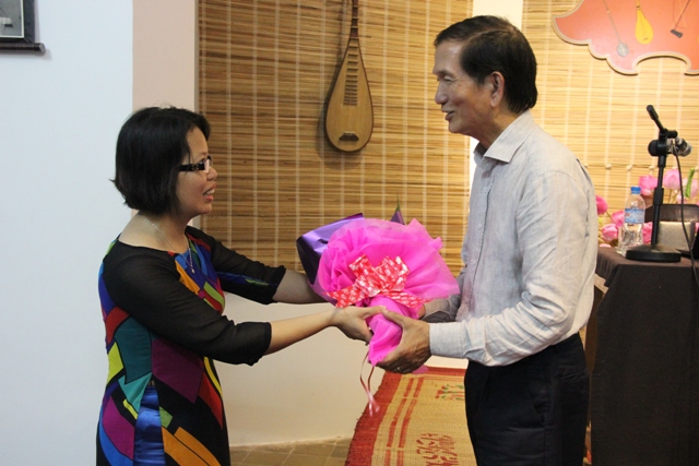 Đại diện Bảo tàng Văn hóa Huế tặng hoa cảm ơn Nhà nghiên cứu Trần Đình Sơn