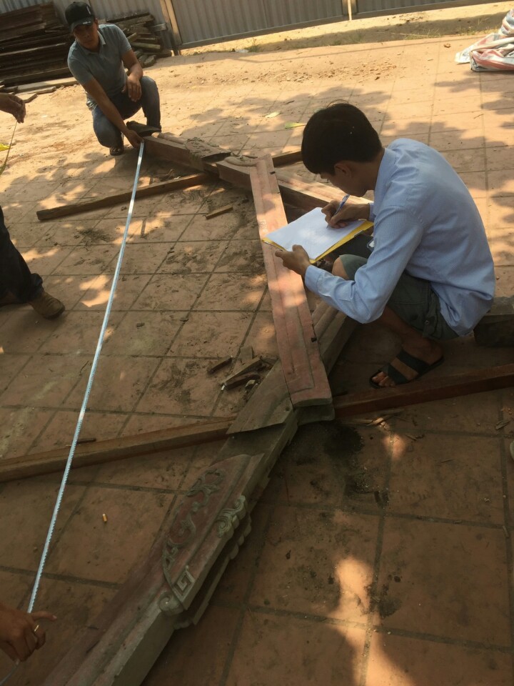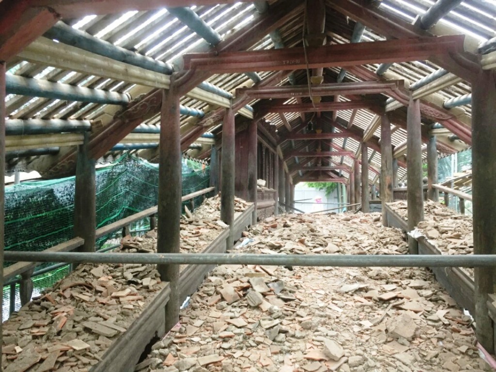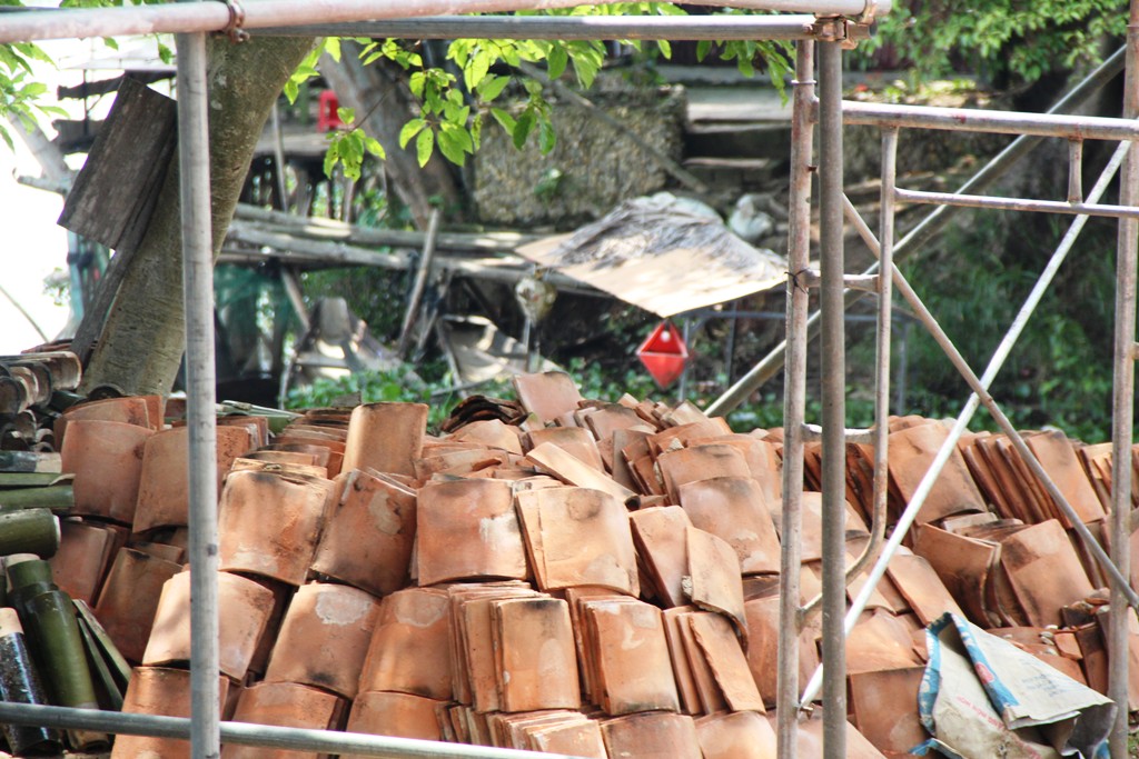 Ngày 16/4, việc hạ giải vẫn đang được tiến hành gấp rút. Hệ thống cột kèo, mái ngói… sau khi được hạ giải được phân loại mức độ hư hỏng. Từ đó sẽ kiểm tra, thẩm định tiếp để lên kế hoạch bổ sung vật liệu trước khi trùng tu.