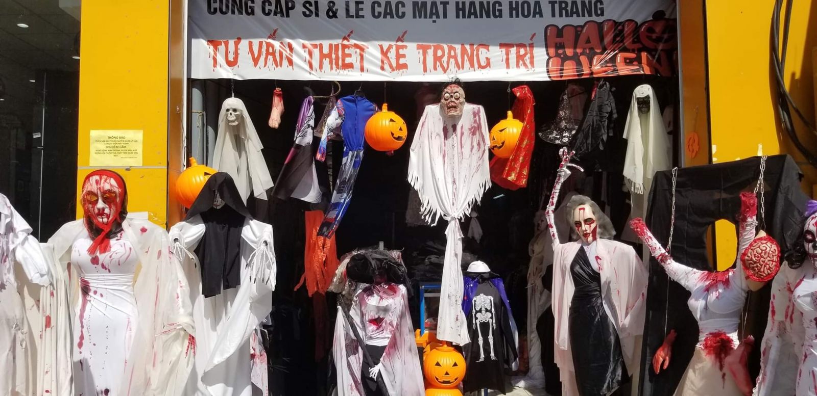 Thời trang kinh dị, ma quái được bày bán ở Huế dịp Halloween.  Ảnh: Hoài Thương