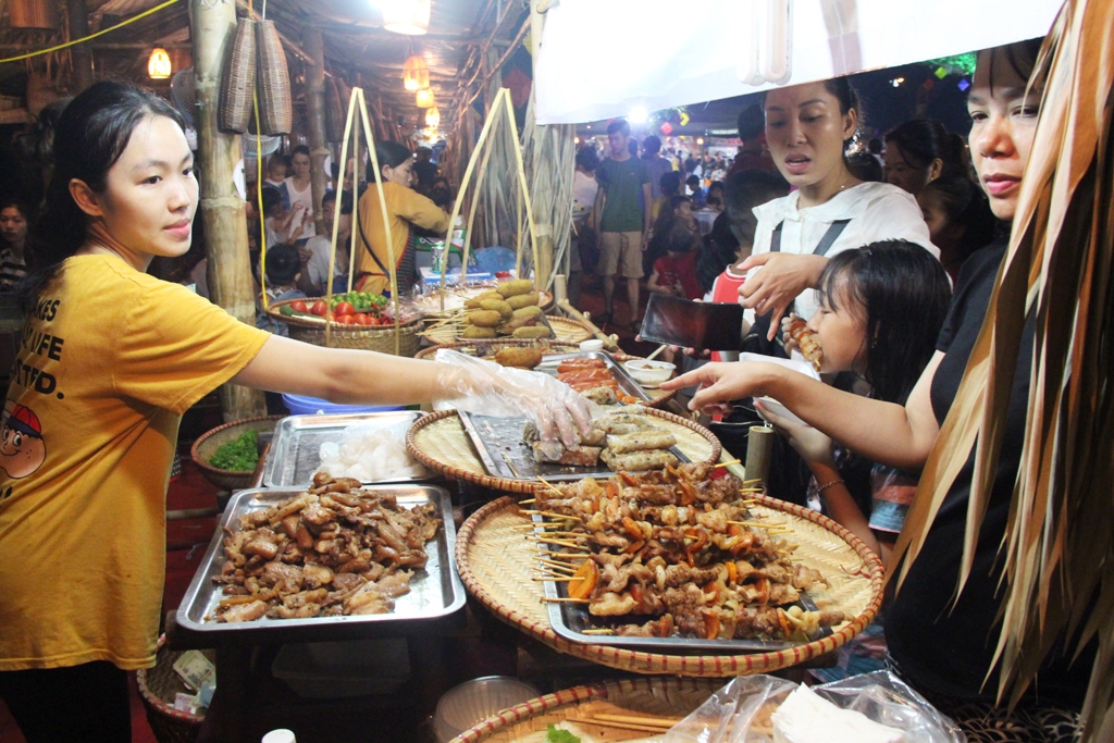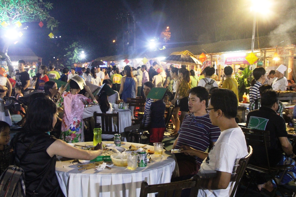 Rất đông người dân, du khách thưởng thức các mon ngon ngay tại không gian ngoài trời