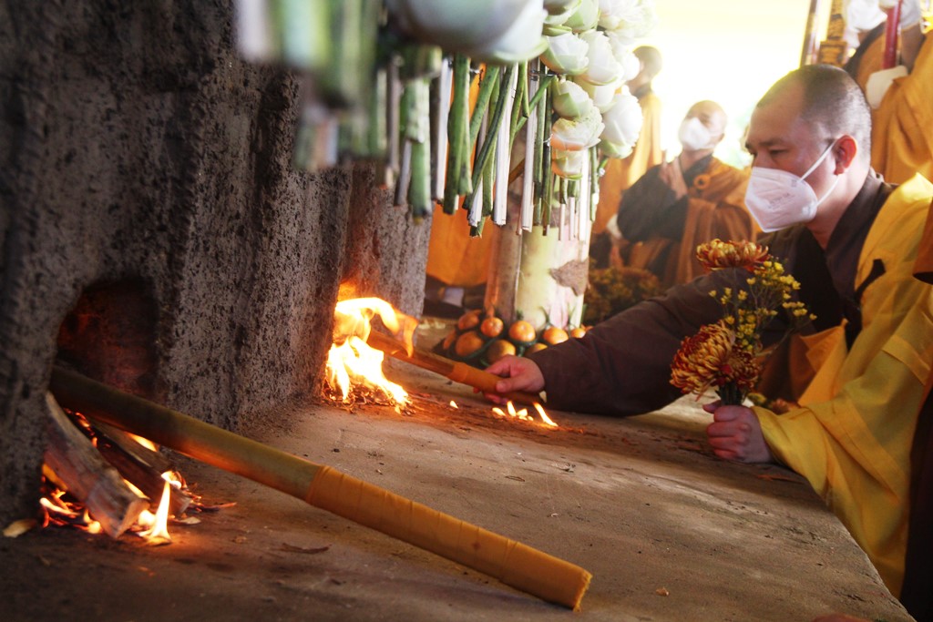 Đúng 9h, lễ trà tỳ được thực hiện trước sự chứng kiến của đông đảo mọi người
