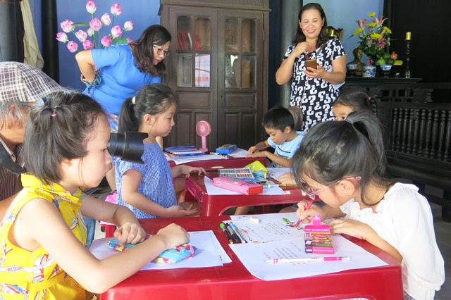 Các em thiếu nhi thi vẽ tranh tại nhà lưu niệm Chủ tịch Hồ Chí Minh tại đường Mai Thúc Loan