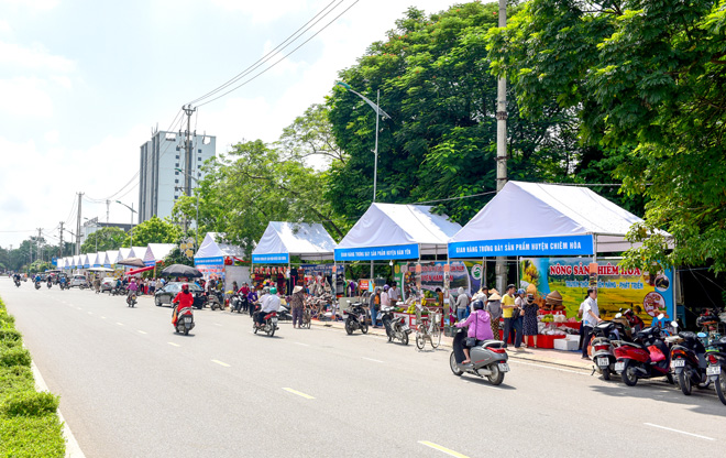 Khu trưng bày, giới thiệu các sản phẩm nông sản đặc trưng của tỉnh tại Đại lộ Tân Trào (TP Tuyên Quang). Ảnh: Quốc Việt