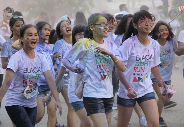 HNN.VN - Chiều 18/9, tại đường số 10 khu đô thị mới An Cựu City diễn ra chương trình Blacklight run in Hue - “Đường chạy ánh sáng – phát tán sắc màu yêu thương”, thu hút hơn 1.000 bạn trẻ tham gia.