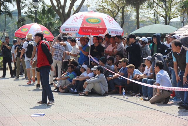 Dù thời tiết nắng, nhiều người dân vẫn chăm chú theo dõi