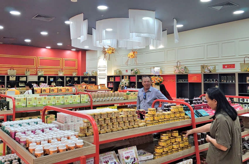 Trong khi đó khu vực đặc sản kinh đô với rất nhiều sản phẩm đặc sản của Huế cũng cuốn hút mọi người. Từ các loại bánh mứt đặc sản, đến sản phẩm thủ công mỹ nghệ được chế tác công phu, mọi món quà đều được chọn lọc kỹ lưỡng, đảm bảo chất lượng và tính bền vững.