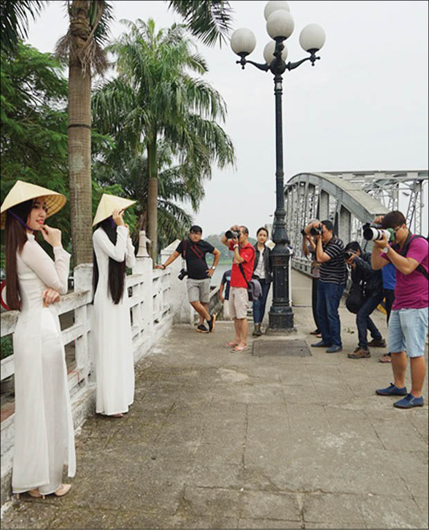 Vẻ dịu dàng của cô gái Huế luôn thu hút ống kính của các tay máy trẻ (Ảnh dưới). Ảnh: Bảo Minh