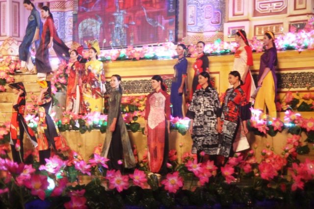 Phần trình diễn các trang phục thổ cẩm trong đêm Khai mạc Festival Nghề truyền thống Huế 2017