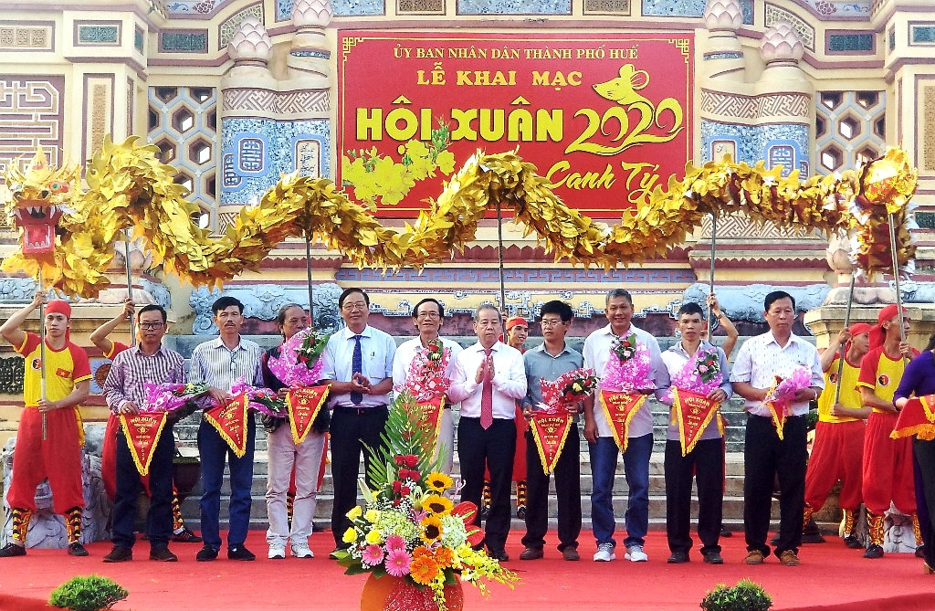 Lãnh đạo tỉnh và TP. Huế tặng hoa, cờ luu niệm cho các đơn vị tham gia Hội Xuân 2020