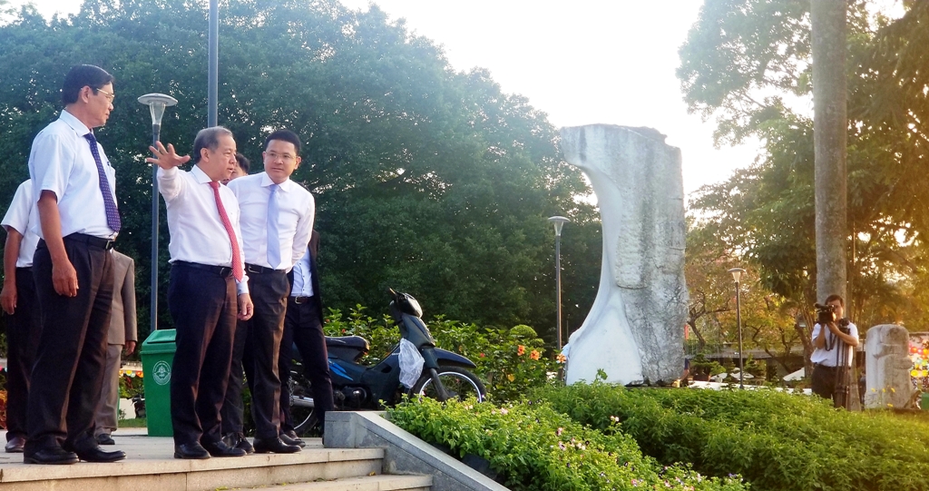 Chủ tịch UBND tỉnh Phan Ngọc Thọ (giữa) chỉ đạo lãnh đạo TP. Huế cần tổ chức những hoạt động vui xuân lành mạnh, bổ ích và có dấu ấn
