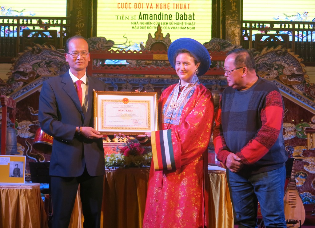 UBND tỉnh tặng bằng khen cho TS. Amandine Dabat với những đóng góp trong việc phát huy di sản của vua Hàm Nghi