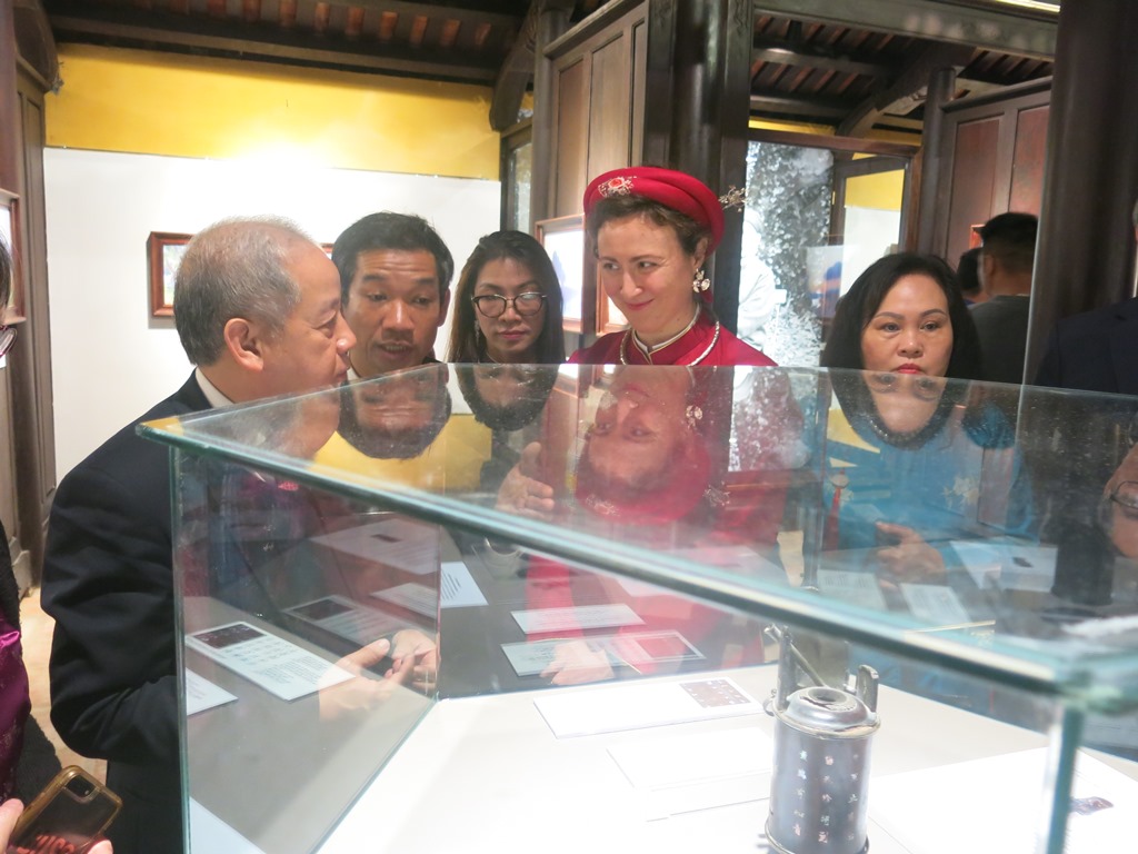 Dịp này, TS. Amandine Dabat hiến tặng cho Trung tâm Bảo tồn Di tích Cố đô Huế ống điếu gắn bó với vua Hàm Nghi suốt cuộc đời lưu đày.