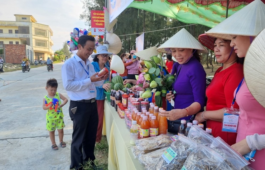 | Gian hàng trưng bày sản phẩm của địa phương tại lễ hội |