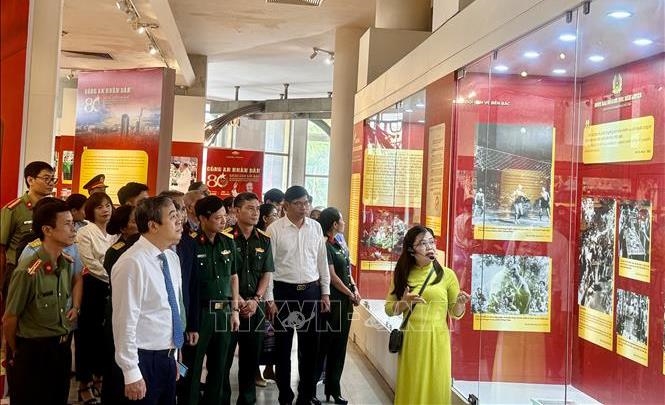 | Khách tham quan Trưng bày chuyên đề “Công an nhân dân - 80 năm khắc ghi lời Bác”. |