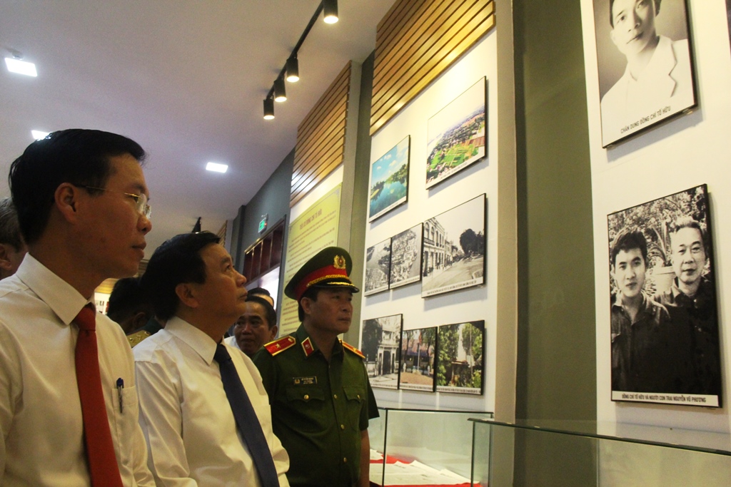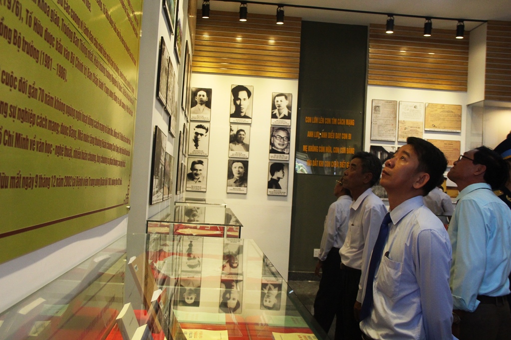 Các đại biểu tham quan không gian trưng bày, nơi đây tái hiện lại cuộc đời, sự nghiệp của nhà thơ Tố Hữu