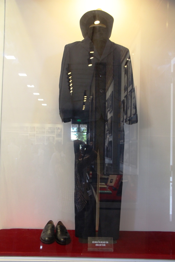 Bộ Com-lê và đôi giày của nhà thơ Tố Hữu được trưng bày bên trong khu nhà trưng bày