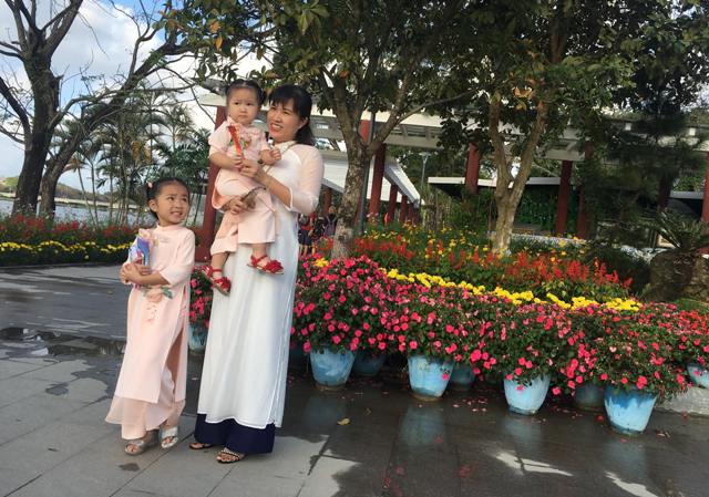 Nhiều gia đình sắp xếp công việc đến các hội xuân chụp ảnh lưu niệm bên tà áo dài truyền thống trong những ngày giáp tết