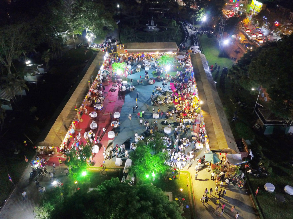 Không gian ẩm thực nằm ở Công viên Thương Bạc, bên dòng sông Hương