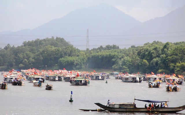 Rất đông thuyền đò tập trung về phía trước điện Huệ Nam tham gia lễ hội vào những năm trước. Riêng tháng 3 năm nay, lễ hội sẽ không tổ chức do ảnh hưởng COVID-19