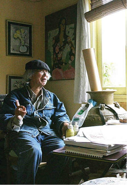 Lưu Công Nhân trong phòng vẽ của ông ở Đà Lạt (tháng 7-2003)