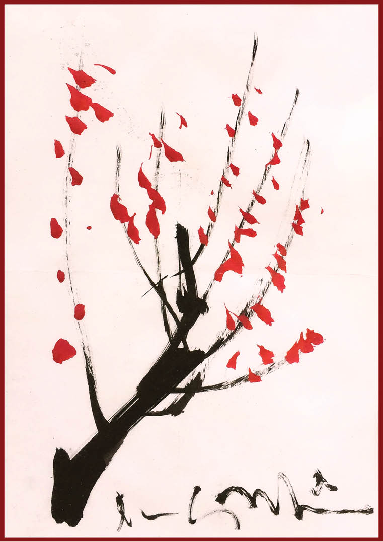Đó là một sớm mai ngày giáp Tết thật thảnh thơi sau những hối hả, tất bật chuẩn bị đón xuân mới, tôi nhận được một bì thư khổ lớn với nét chữ người gửi thật thân quen ở miền Bắc. Bên trong không có thư, chỉ một tờ giấy trắng khổ vở học trò vẽ một cành đào thật giản dị mà cũng thật tài hoa. Những đốm hoa đỏ hồng rải rác, phơ phất trên cành nhánh sắc đen rắn rỏi, bên dưới là chữ ký của người bạn vong niên: họa sĩ Lưu Công Nhân. Chỉ thế thôi nhưng bức tranh nhỏ đã mang cả một mùa xuân tươi ở nơi xa đến với tôi: “Một đóa đào yêu khéo tốt tươi /Cách xuân mơn mởn thấy xuân cười” (Nguyễn Trãi - Đào hoa thi), và cho tôi hiểu được tấm lòng người gửi: “Một cánh đào rơi nhớ cố nhân” (Nguyễn Bính - Xuân tha hương).