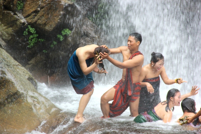 * Một số hình ảnh tại hoạt động tắm suối và nét sinh hoạt truyền thống dưới nước: