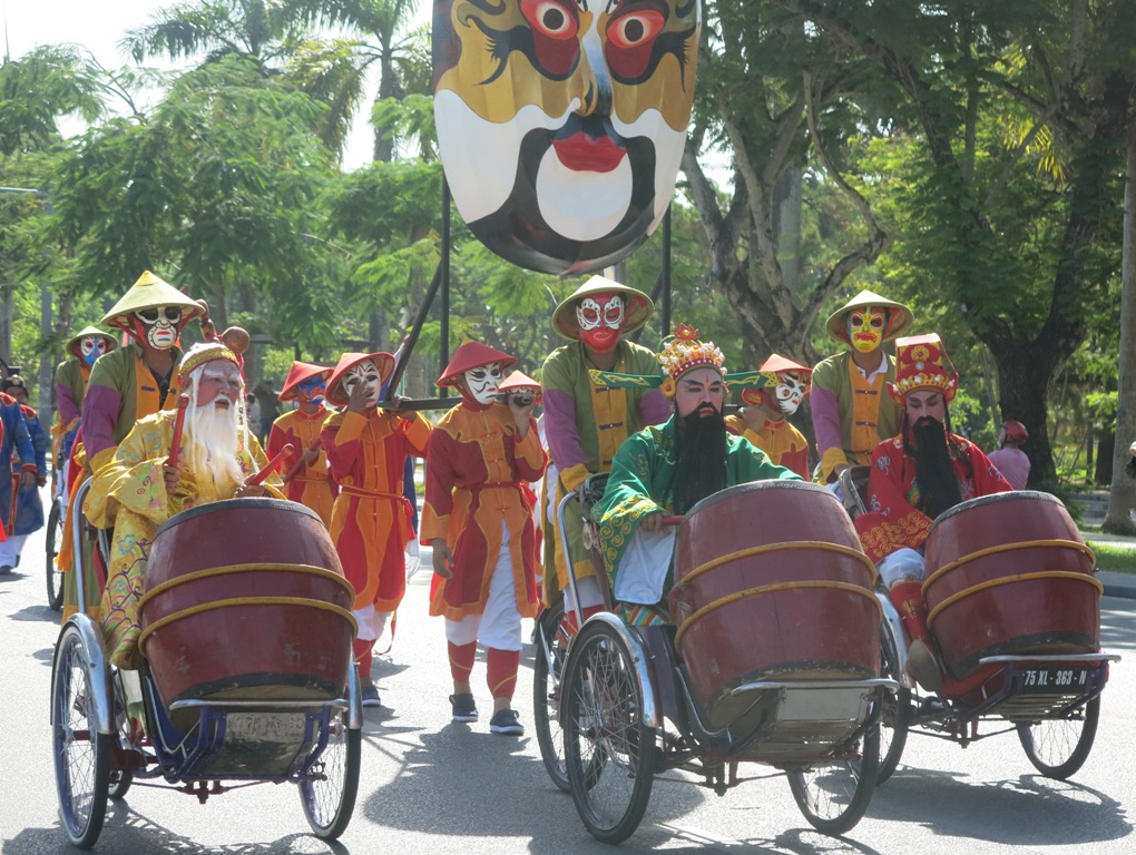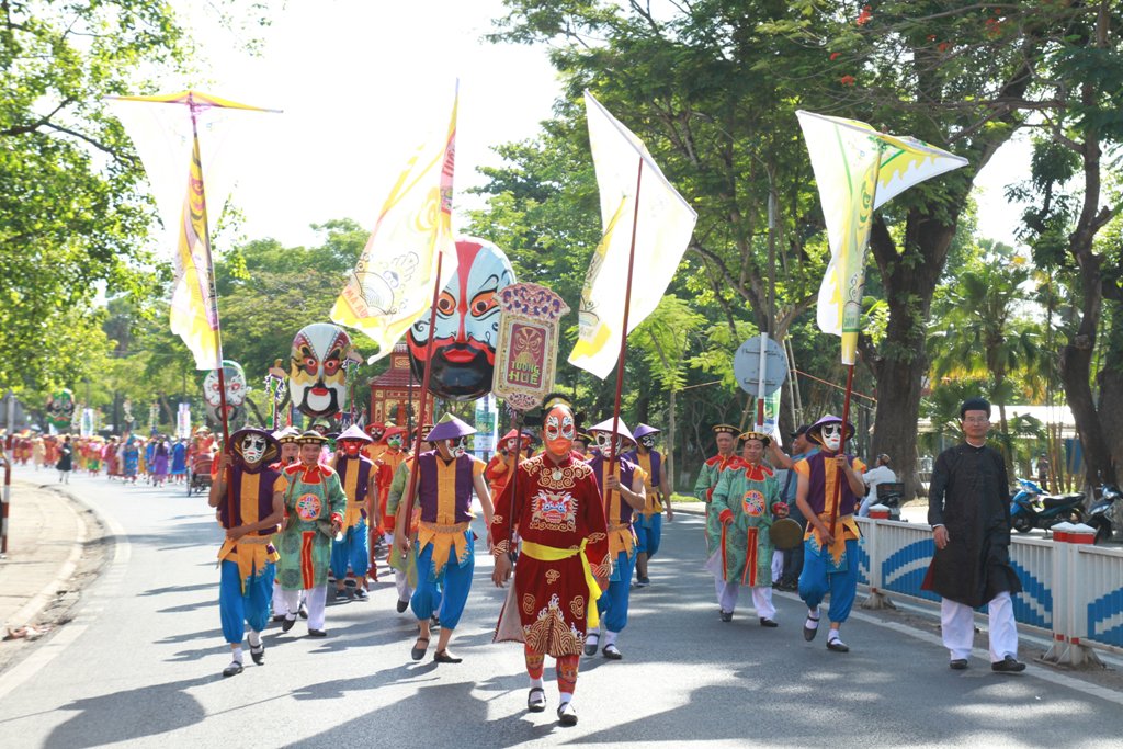 Trong tiếng kèn, trống, cờ xí, với sự trình diễn của các đội Đại nhạc, Tiểu nhạc, đoàn rước diễu hành qua các tuyến phố, tạo nên hình ảnh đẹp mắt. Qua trang phục của nghệ thuật cung đình, các nhân vật tuồng hóa trang mặt nạ khác nhau, tạo nên một lễ hội đường phố sinh động, sắc màu, phô diễn nét đặc sắc của nghệ thuật tuồng.