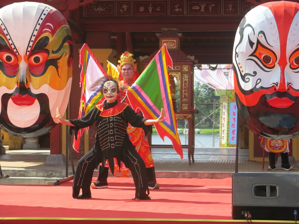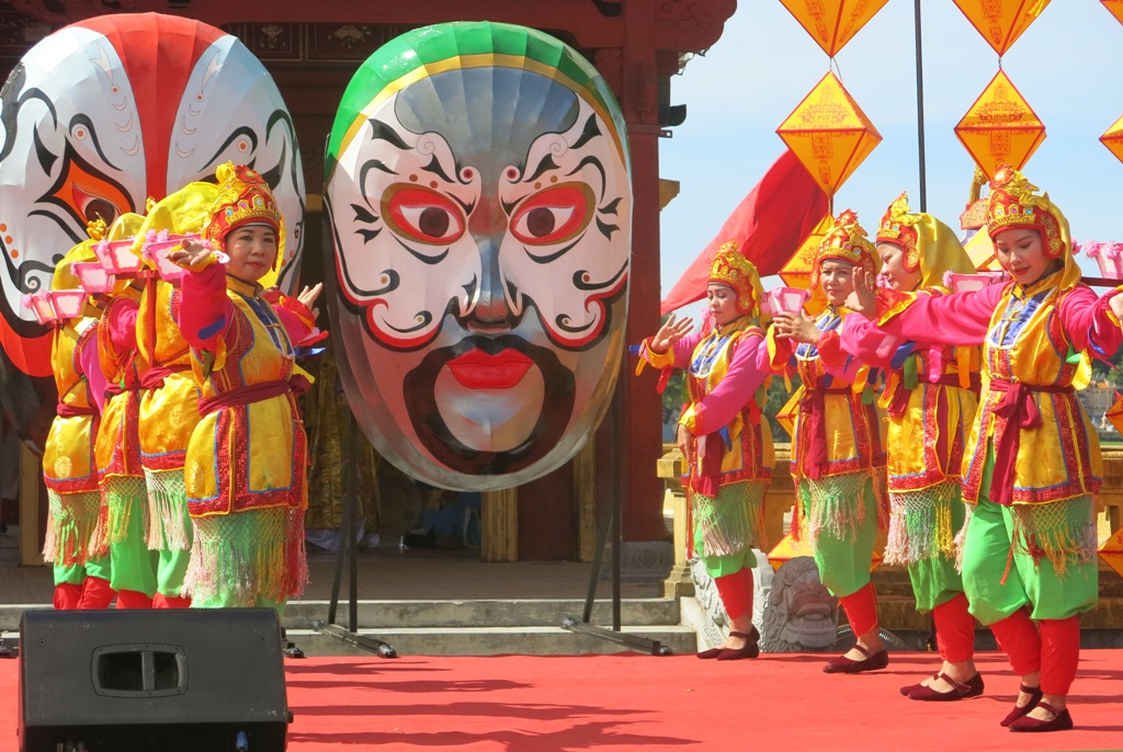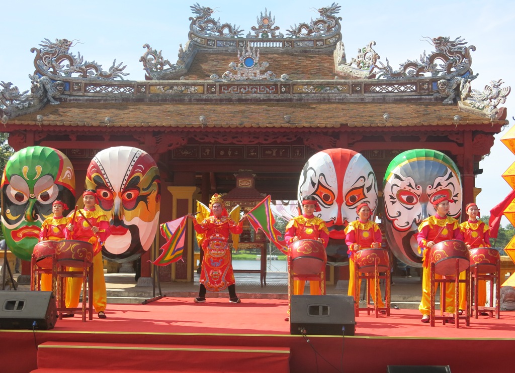 Tại Nghinh Lương đình, các diễn viên, nghệ sĩ của Nhà hát Nghệ thuật truyền thống Cung đình Huế trình diễn các trích đoạn tuồng: “Ác thiện ẩn hình”, “Mộc Quế Anh dâng cây Giáng hương long”, trống hội Tuồng đồ và bài bản múa bông.