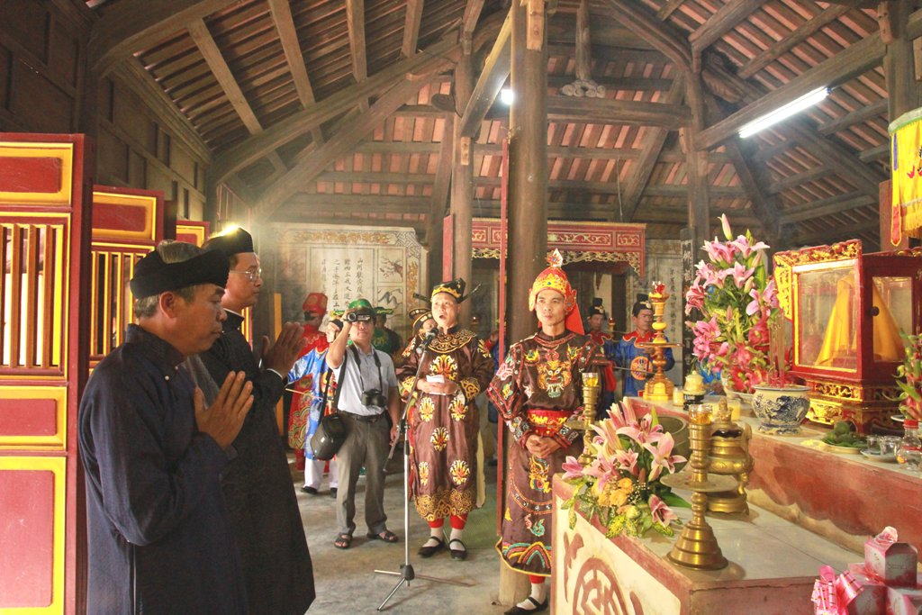 Kết thúc chương trình, đoàn rước tiếp tục diễu hành vào Duyệt thị Đường để thực hiện nghi thức tiến hoa dâng tiền nhân, thể hiện lòng ngưỡng vọng, thành kính đối với người xưa.