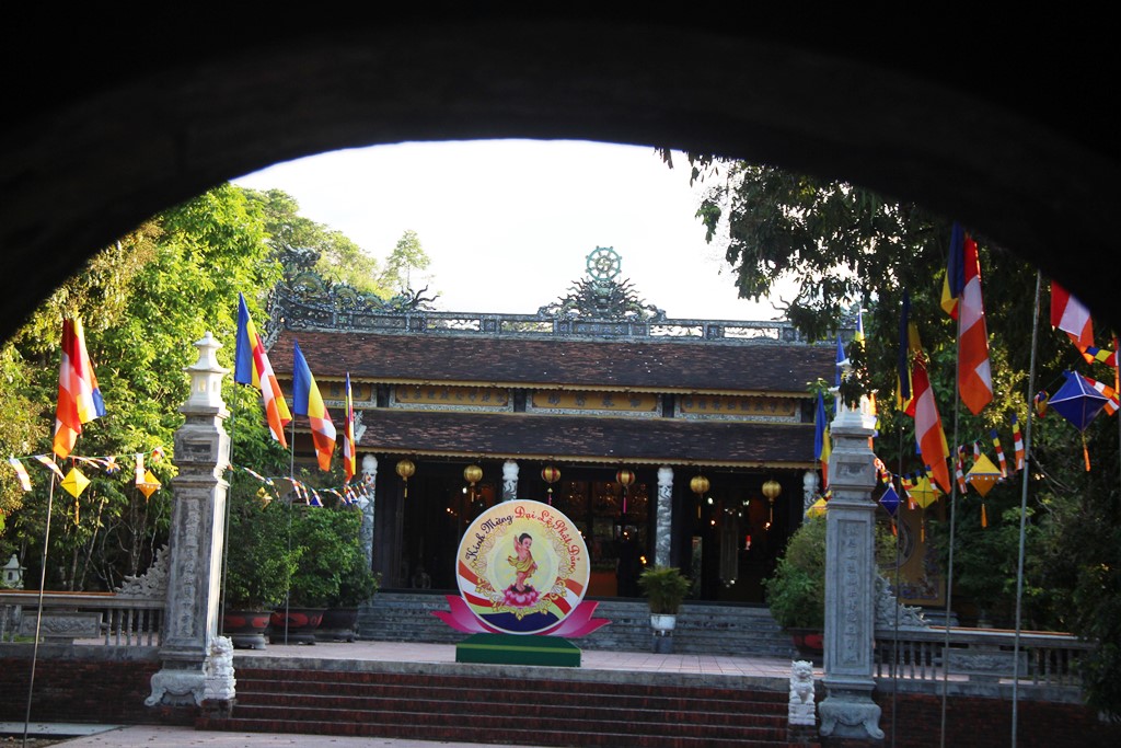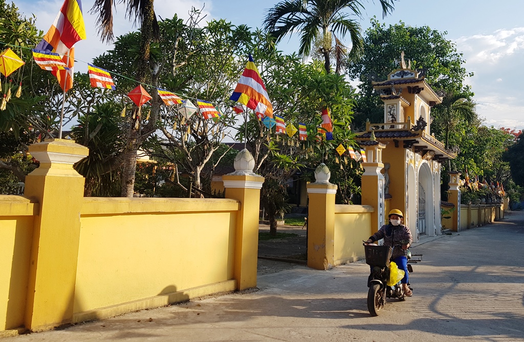 Đường dẫn vào nhiều ngôi chùa Huế ngập tràn sắc cờ hoa