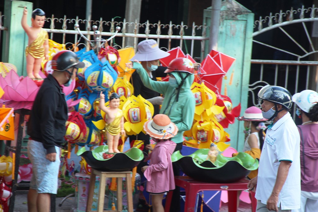 Dù ảnh hưởng do dịch, một số người dân vẫn tranh thủ xuống phố mua lồng đèn và một vài vật dụng trang trí Phật đản