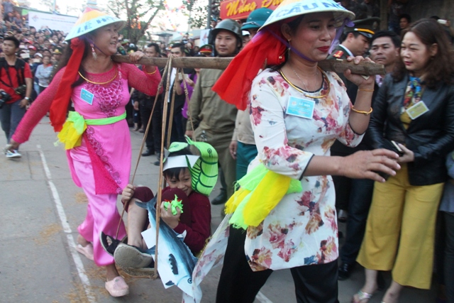 Tiết mục múa lân với sự háo hức tham gia của đông đảo người dân địa phương và du khách thập phương