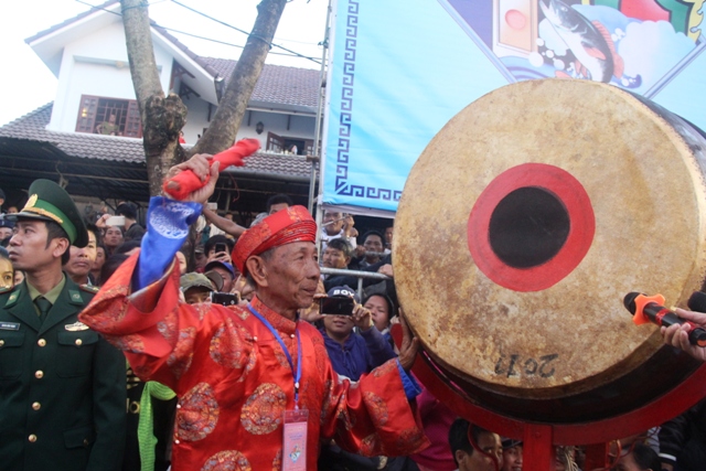 Ông Nguyễn Văn Ái (76 tuổi) một vị cao niên trong làng, Trưởng BTC lễ hội đánh trống khai hội.