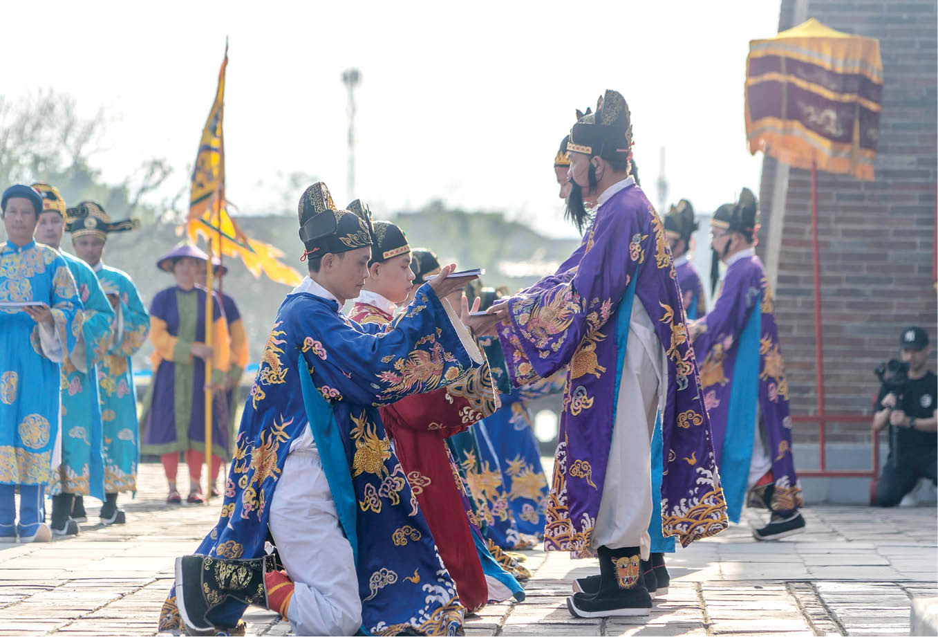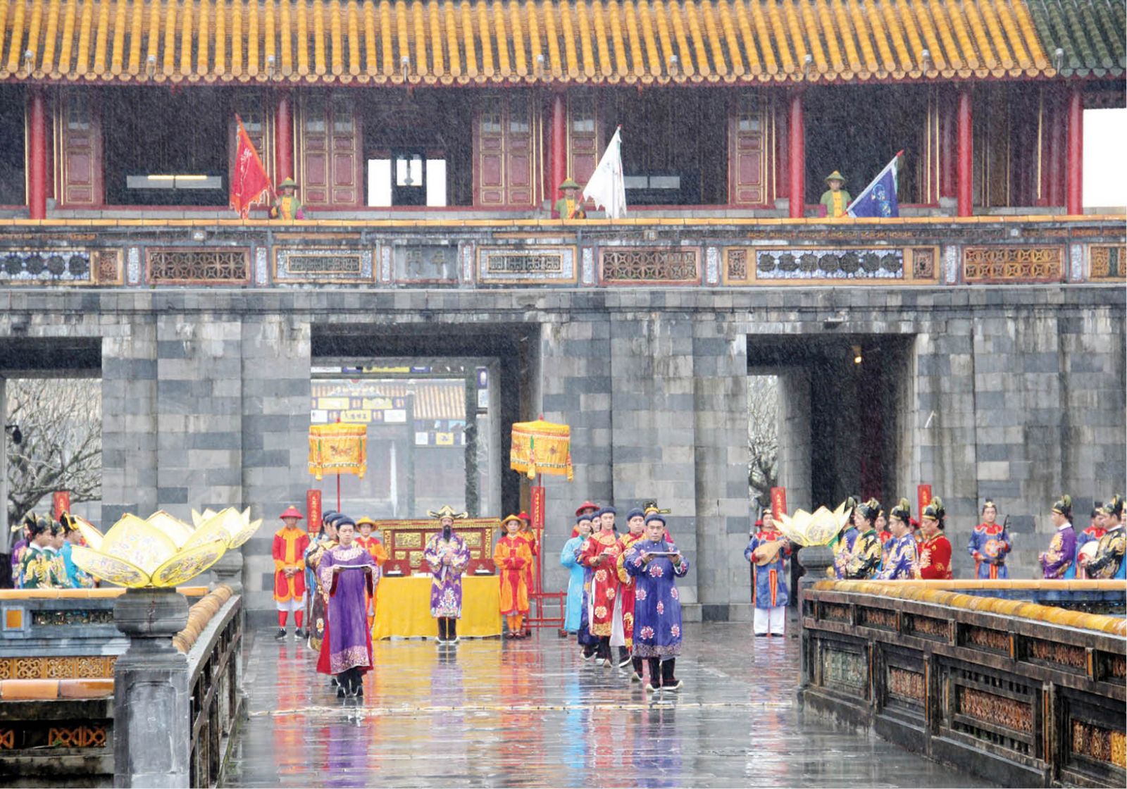 Tại Hoàng cung - Đại Nội Huế, nhiều nghi lễ cung đình xưa được tái hiện sống động, mang đến trải nghiệm độc đáo, giúp du khách hiểu sâu sắc giá trị văn hóa trường tồn trong Hoàng cung Huế xưa.