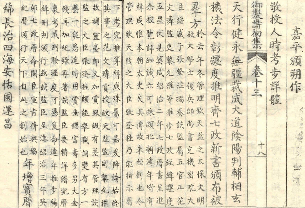 Bài “Gia bình Ban sóc tác” của vua Thiệu Trị in trong “Ngự chế thi sơ tập” (quyển 13, tờ 18a - 19a). Ảnh: HẢI TRUNG