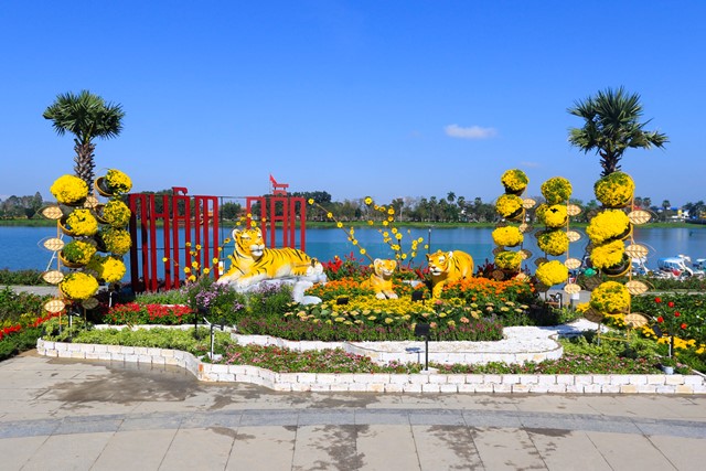 Hổ không chỉ xuất hiện tại cổng chào mà còn được dựng thành hình khối đặt tại hai khu vực đài phun nước và đầu cầu Phú Xuân. Gia đình hổ bằng chất liệu xơ dừa được bài trí tại đài phun nước cũng tượng trưng cho hình ảnh gia đình đoàn tụ, gửi gắm mong muốn sum vầy của người dân trong mỗi dịp tết đến xuân về. Loài hổ tại đầu cầu Phú Xuân lại mang phong cách đồ họa hiện đại với chi tiết độc đáo, bắt mắt, mang đến không khí vui tươi cho ngày tết.