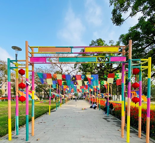 Không gian lễ hội xuân còn được trang trí bởi loại hình nghệ thuật đương đại, nghệ thuật sắp đặt và cách điệu để tạo nên các chi tiết mới mẻ, phù hợp với không khí tươi vui trước thềm năm mới. Sự hòa quyện giữa truyền thống và hiện đại, cái mới và cái cũ đan xen, tạo thành một thể thống nhất khơi dậy xúc cảm quen thuộc, thân thương trong mỗi người khi đến đây tham quan.