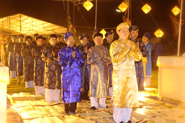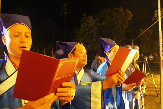 Những người tham dự nghi lễ trong trang phục áo dài khăn đóng trang nghiêm