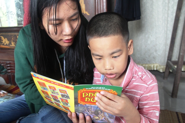 Một em nhỏ vui mừng khi được tặng sách và đọc chăm chú vào những ngày đầu năm mới