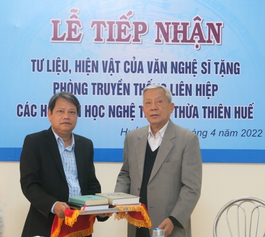 Nhiều hình ảnh, tư liệu, hiện vật quý của các thế hệ văn nghệ sĩ trên địa bàn tỉnh đã được trao tặng cho Liên hiệp các Hội VHNT để trưng bày tại phòng truyền thống. Trong số đó có văn bản gốc giới thiệu chữ ký và ban vận động thành lập Hội Liên hiệp nghệ thuật Thừa Thiên Huế năm 1975; tư liệu về Đại hội văn học nghệ thuật Bình Trị Thiên năm 1978; những số đầu tiên được xuất bản của Tạp chí Sông Hương; bản scan tất cả các bìa báo liên quan đến văn học nghệ thuật cách mạng Thừa Thiên Huế...