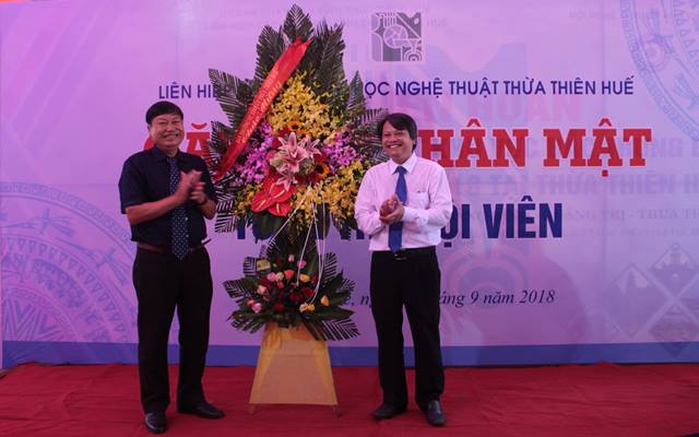 Ông Nguyễn Thái Sơn, UVTV, Trưởng Ban Tuyên giáo Tỉnh ủy tặng hoa chúc mừng Liên hiệp các Hội VHNT