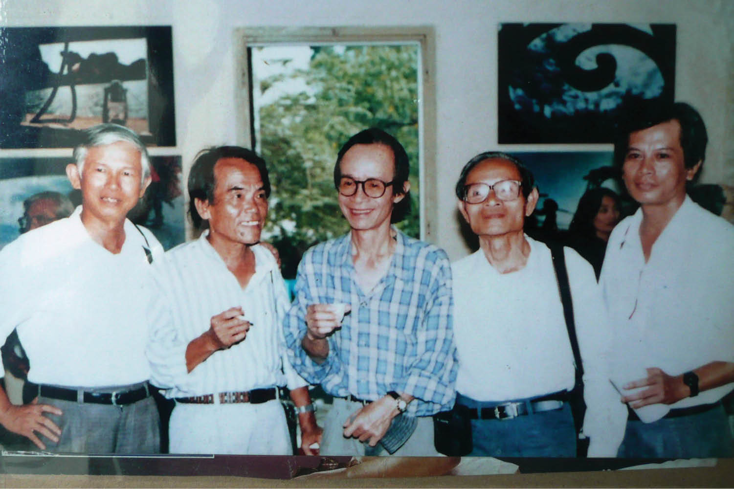 Từ trái qua: Nhà nghiên cứu Nguyễn Đắc Xuân; nhà văn Hoàng Phủ Ngọc Tường; nhạc sĩ Trịnh Công Sơn, nhiếp ảnh Ngô Tuệ; nhà báo, đạo diễn truyền hình Bùi Ngọc Quỳnh