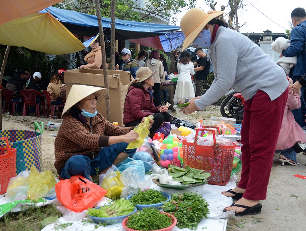 Trên Quốc lộ 49B, từ xa, đã thấy cảnh mua bán diễn ra nhộn nhịp và náo nhiệt, đâu đâu cũng nghe tiếng cười nói, chào mời và những lời chúc nhau một năm mới tốt đẹp nhất. Trên khuôn mặt của mỗi người đi chợ phiên đều rạng rỡ, phấn khởi.