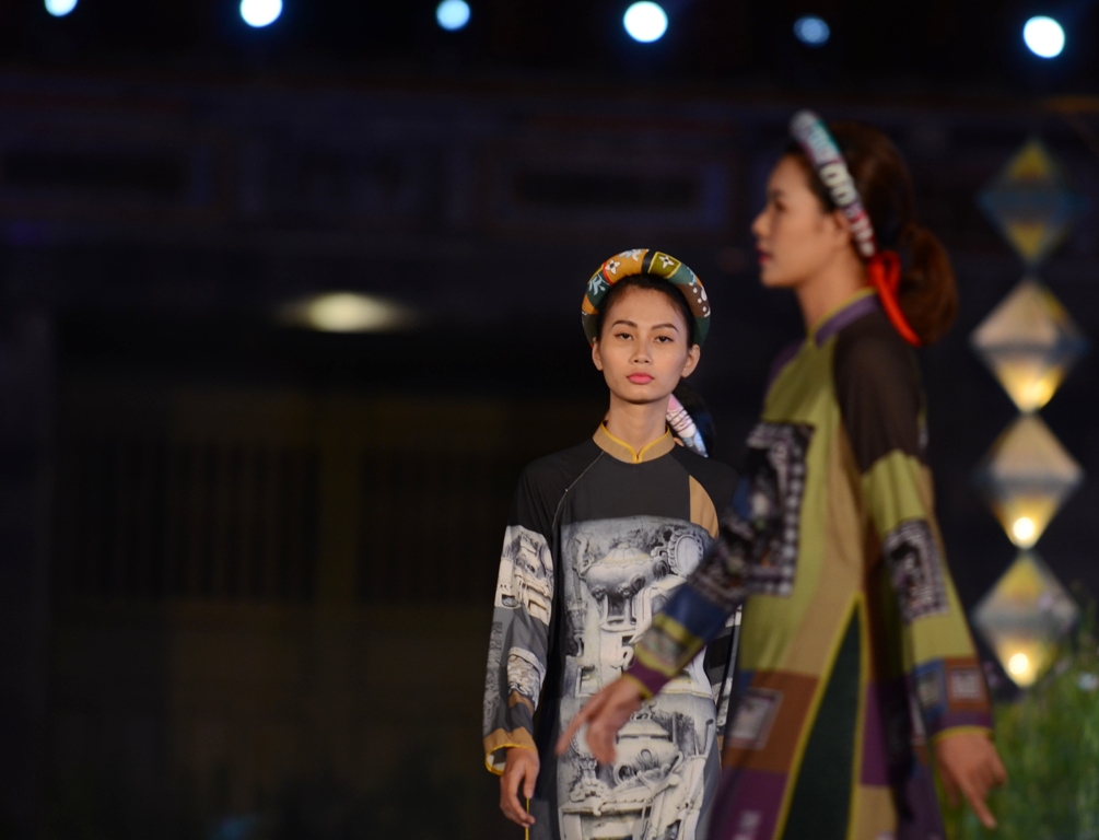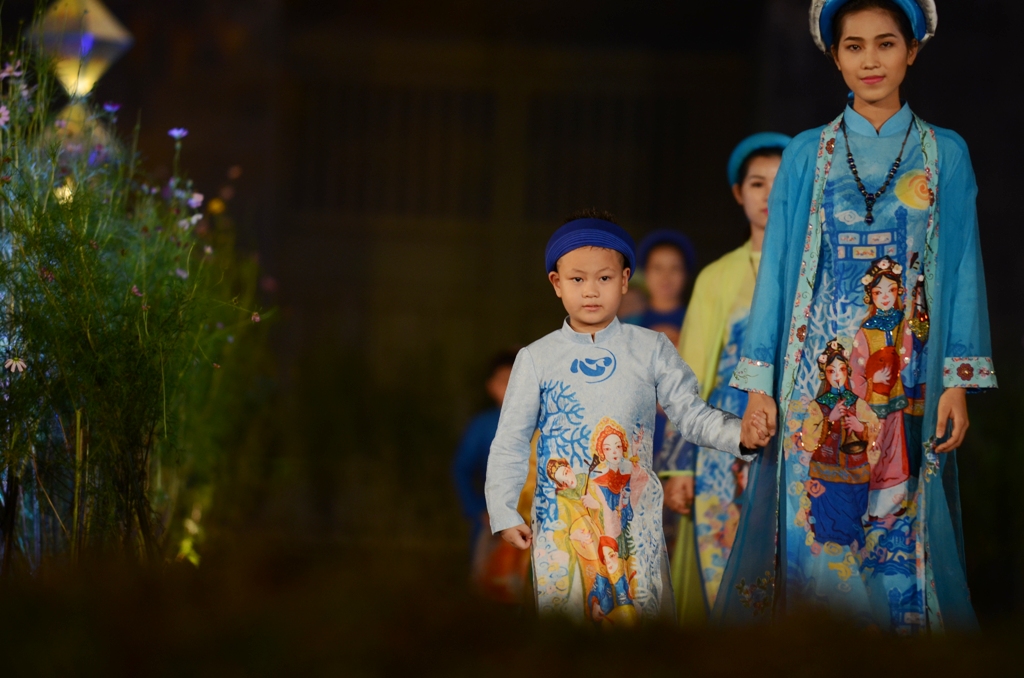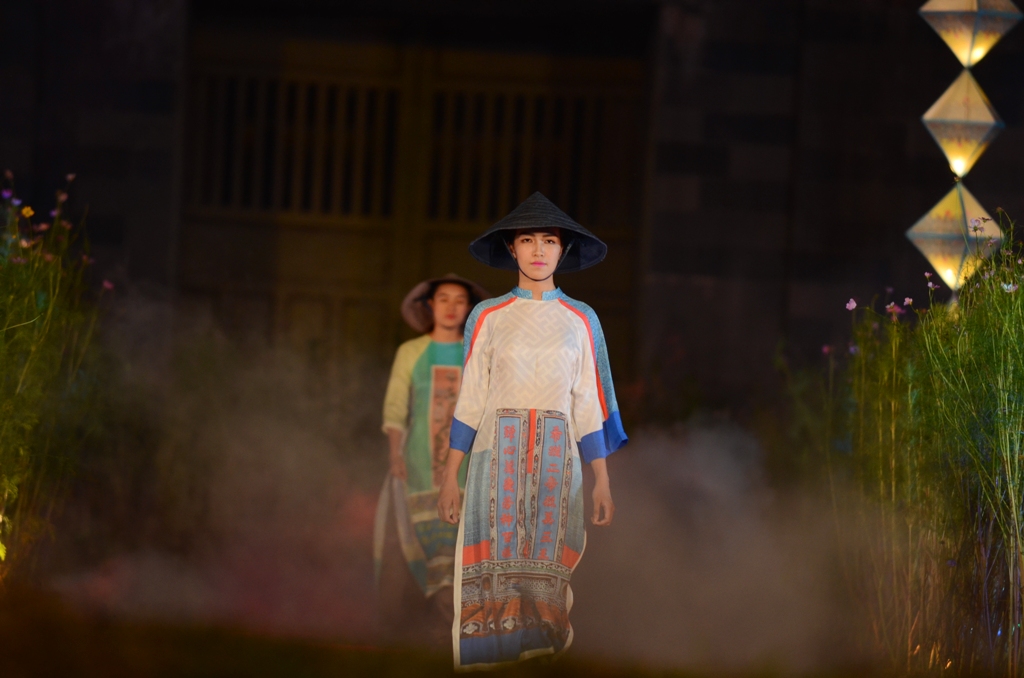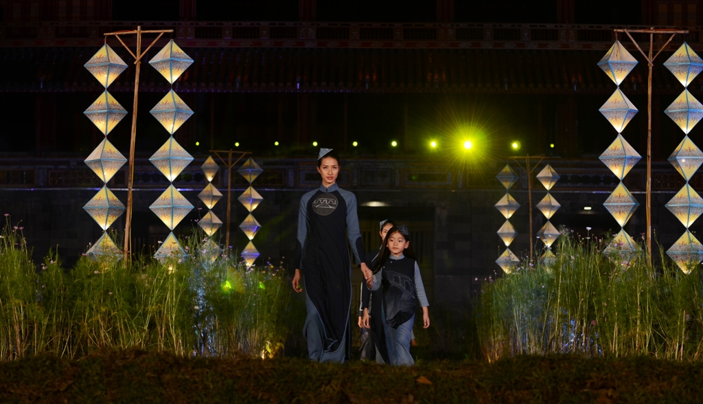 Mở màn cho đêm hội áo dài là bộ sưu tập "Thành nhà Hồ" của NTK Genviet Jeans