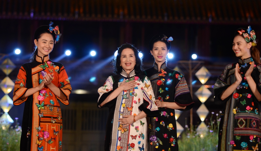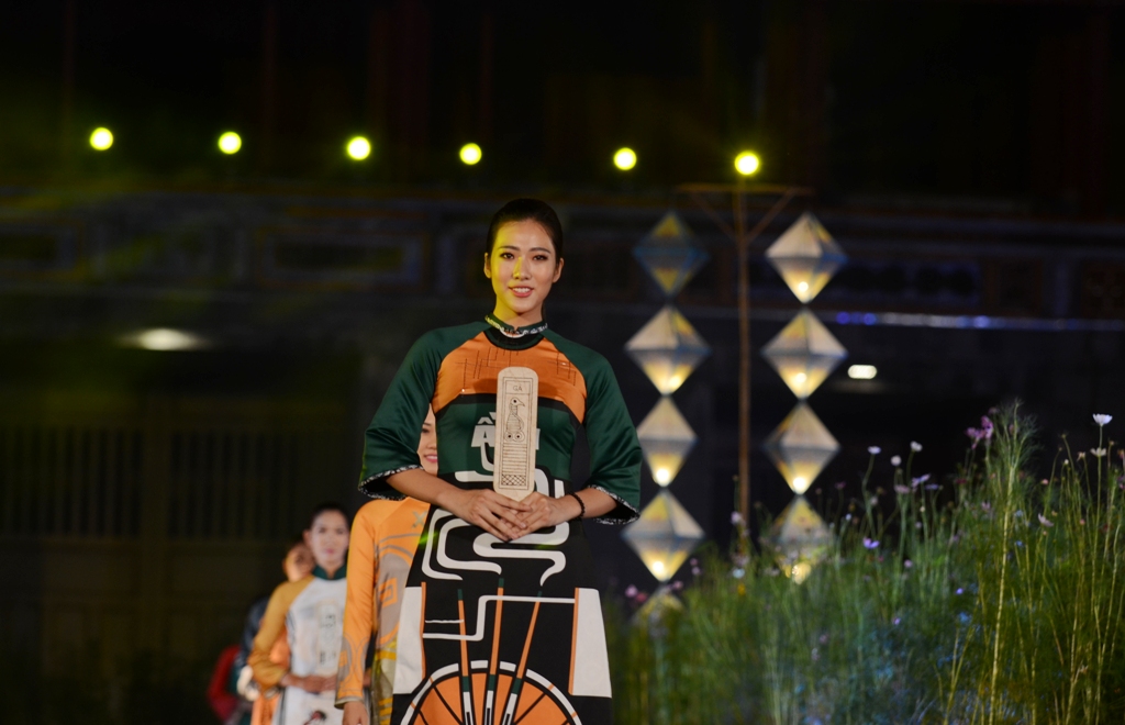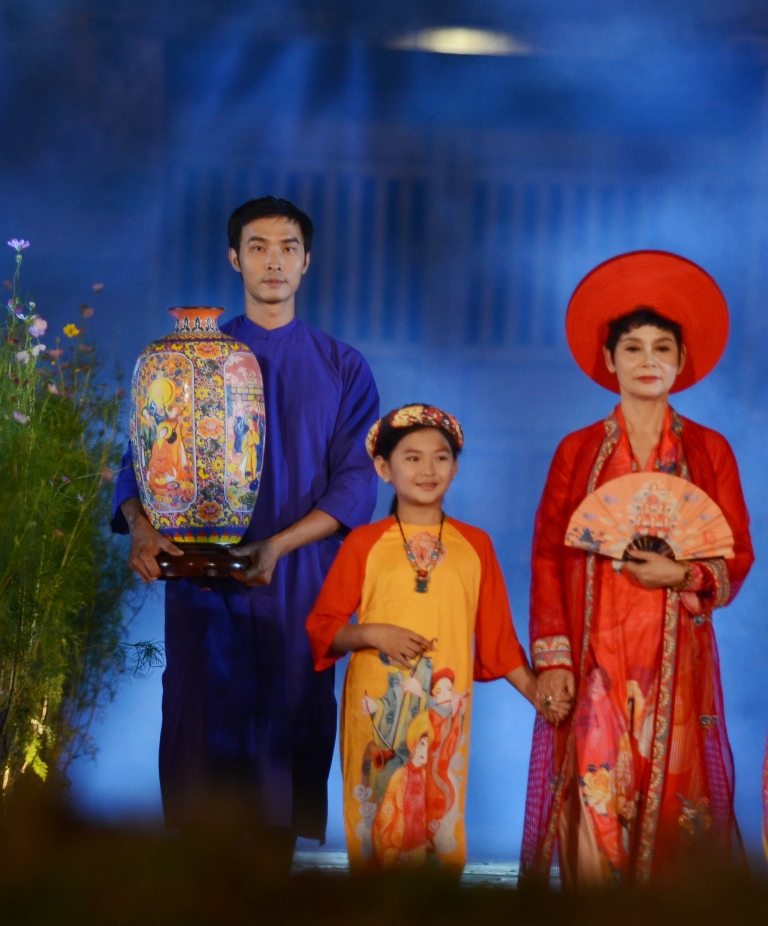 Bộ sưu tập "Không gian văn hóa cồng chiêng Tây nguyên" của NTK Minh Hạnh với sự góp mặt của NSND Trà Giang là tiết mục cuối của "Áo dài trên con đường di sản"