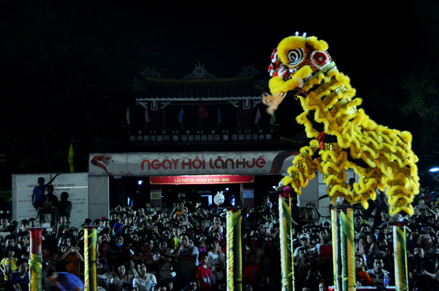 Bảy tiết mục biểu diễn trong tối 19/9 của các đội lân thể hiện những kỹ năng điêu luyện đã lột tả được thần thái uy dũng của lân, một loại linh thú được biết đến nhiều trong các huyền thoại và trang trí mỹ thuật, văn hóa cung đình Huế, đem đến cho khán giả, du khách những màn biểu diễn vui nhộn, mãn nhãn.
