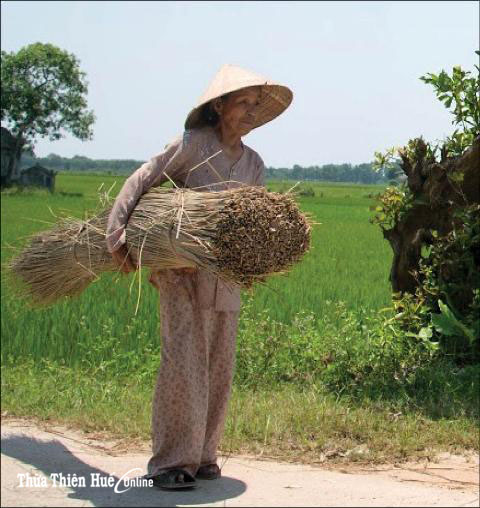 “Nghề này tuy thu nhập thấp nhưng làng tôi không phụ nghề. Thời chiến tranh, đi tản cư qua làng khác, tui vẫn đưa bàng đi theo để đan. Đan để kiếm tiền đong gạo chứ không thôi lấy gì mà ăn” - tiếng mệ Nguyễn Thị Hồng đều đều trong căn nhà nhỏ. Tôi nhình quanh, nhà mệ có gần hai chục bó bàng lớn đã được chằng đậy kỹ càng. Cây cỏ bàng này thiệt lạ, phơi được nắng thì lên màu rất đẹp mà chỉ cần bị một trộ mưa là màu xỉn ngay, mà bàng xuống màu thì chỉ dùng đan bao lồng nhãn, giá thấp hơn nhiều.